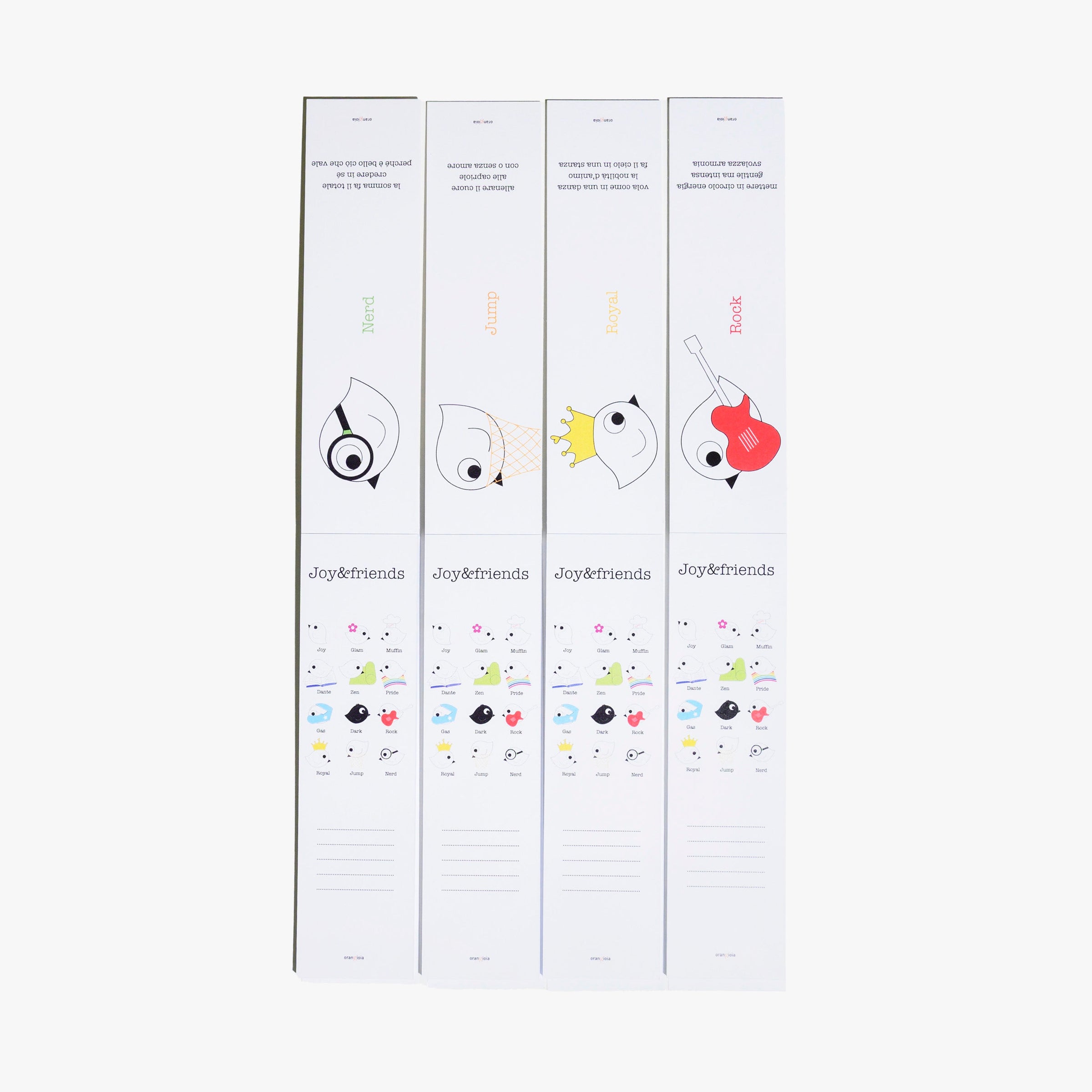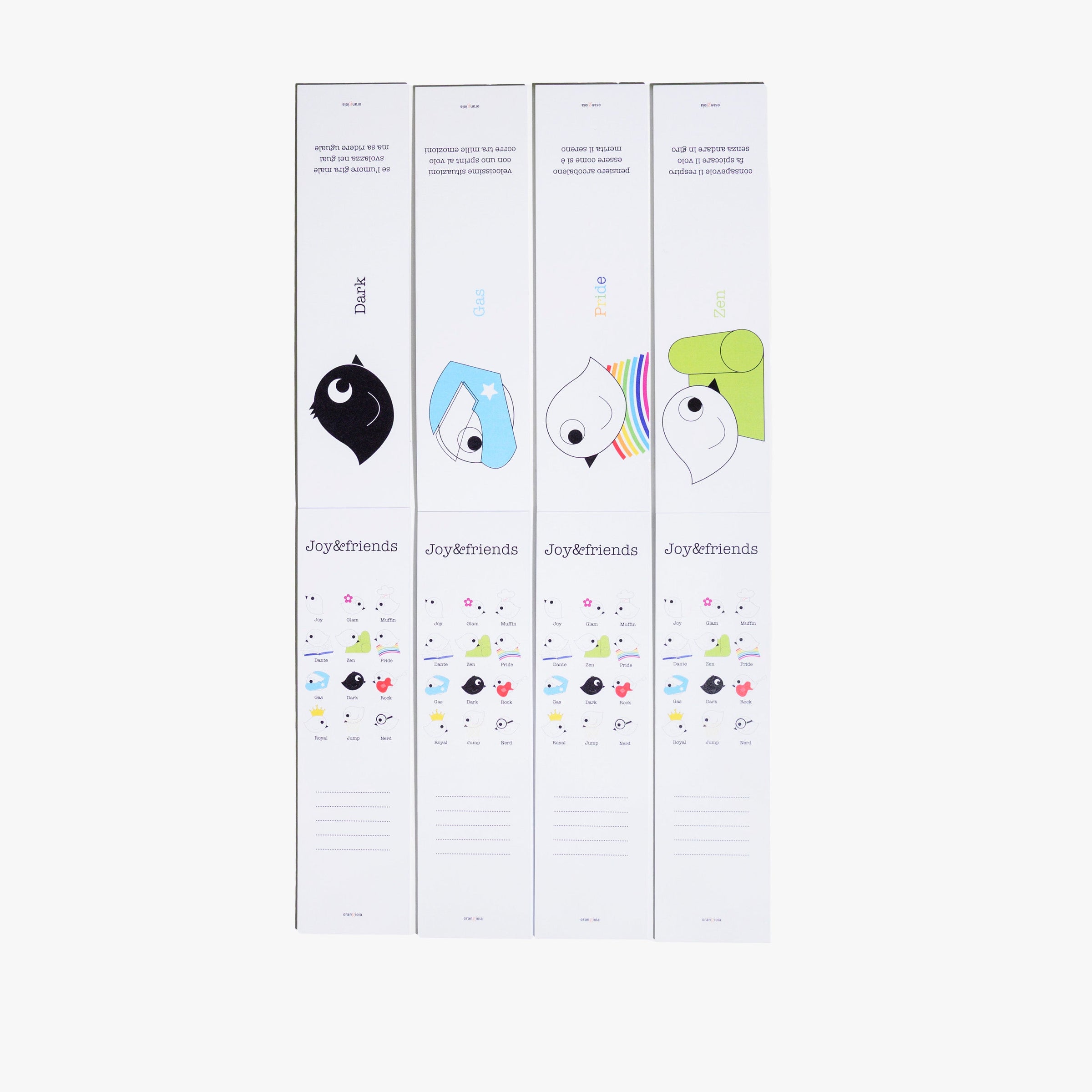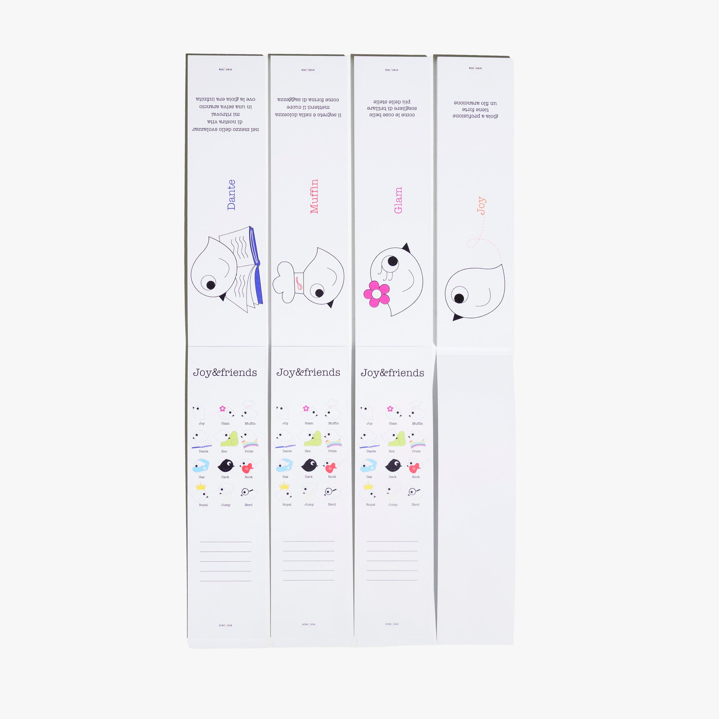 segnalibro ha un personaggio.                                         li puoi regalare tutti insieme                                             o staccarne di volta in volta uno